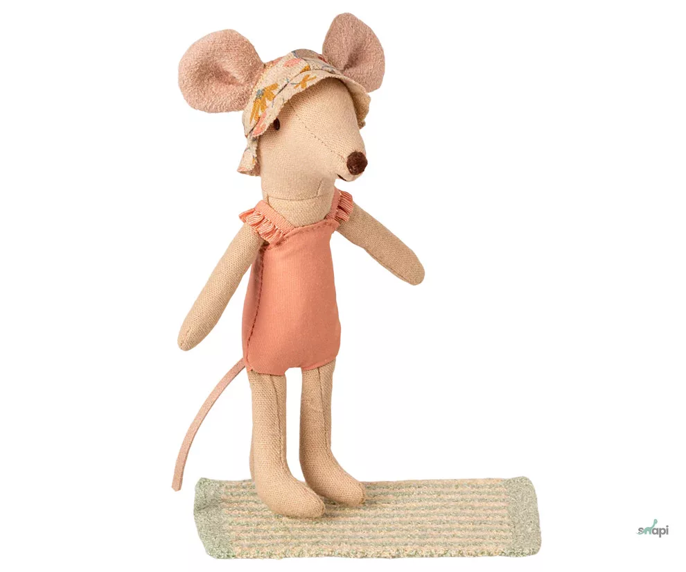 Vakáció... Ez a készlet minden nélkülözhetetlen kiegészítőt tartalmaz egy szórakoztató tengerparti naphoz: fürdőruhát, napkalapot és törölközőt. Mindegyik tökéletesen illik a nagy testvér/nővér méretű egerekre.
