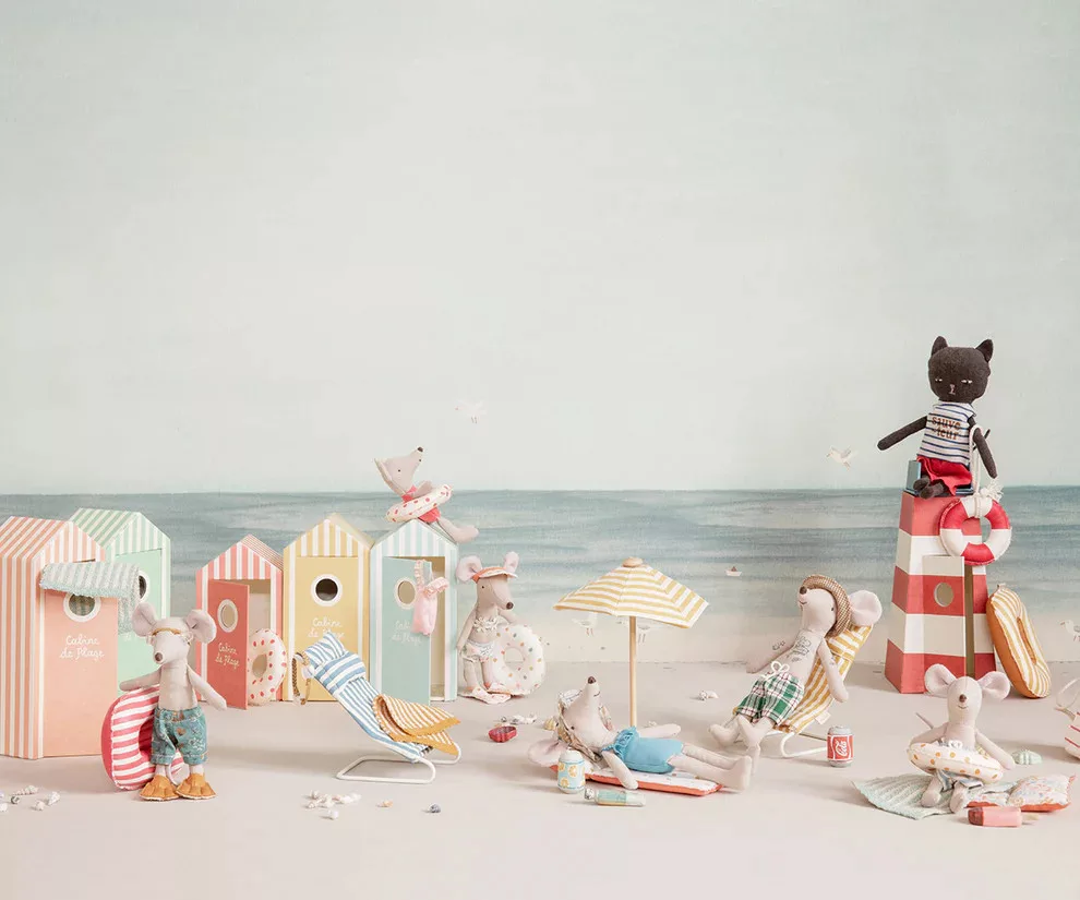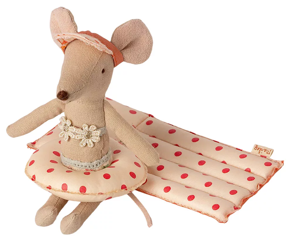 Itt a nyaralás ideje. Bevonatos anyagból készült úszó az autentikus megjelenésért. Nem vízálló, ezért csak száraz talajon játsszon. Csak a képzeletedben úszik a vízen. Ez a készlet baba méretű egerek és kistestvérek számára alkalmas.