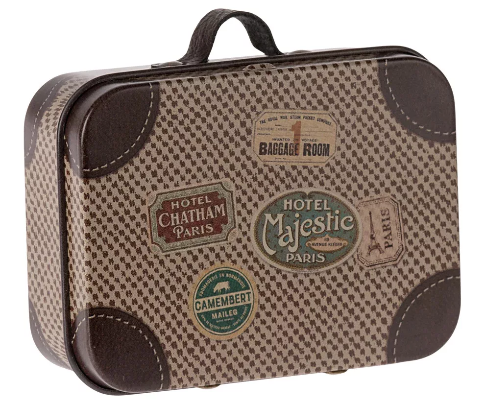 Ez a kis fémbőrönd színes illusztrációkkal és gyönyörű részletekkel bármilyen alkalomra használható: apró ajándékok, apró tárgyak tárolására vagy egerek és kis nyuszik számára, hogy útközben hozzák magukkal a holmikat.