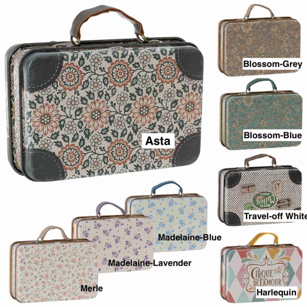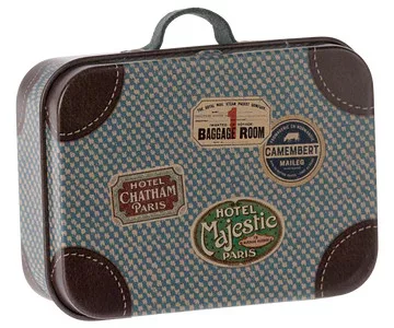 Ez a kis fémbőrönd színes illusztrációkkal és gyönyörű részletekkel bármilyen alkalomra használható: apró ajándékok, apró tárgyak tárolására vagy egerek és kis nyuszik számára, hogy útközben hozzák magukkal a holmikat.