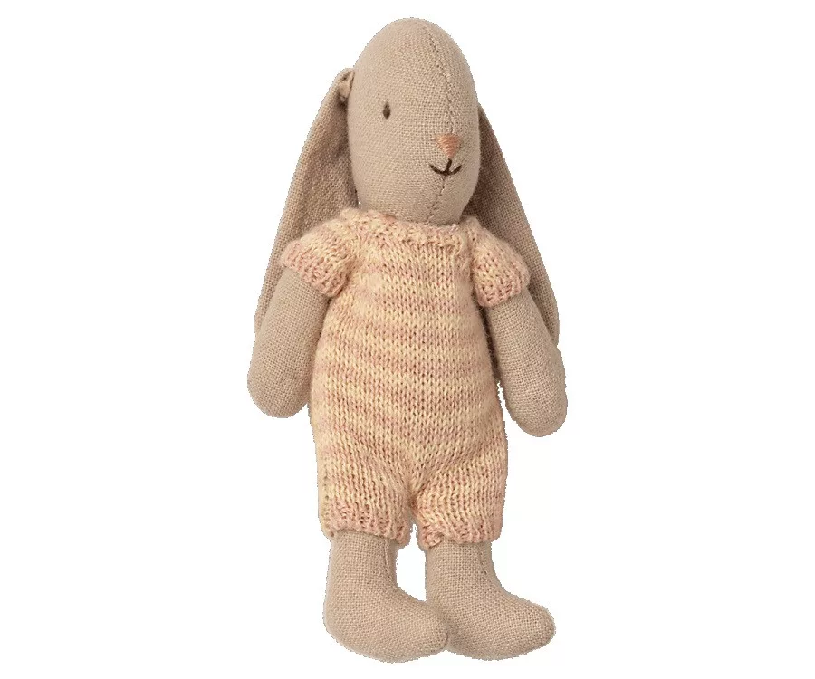 Ez az édes, mikroméretű nyuszi puha len/pamut keverékből kötött csíkos overált visel. Minden mikroméretű bútorhoz illeszkedik, és sok órányi játékot biztosít. A kötött overál 3 szép színkombinációban kapható. Méretében remekül passzol az egerekhez vagy lehetnek a nagyobb méretű nyuszik babanyuszikái is.