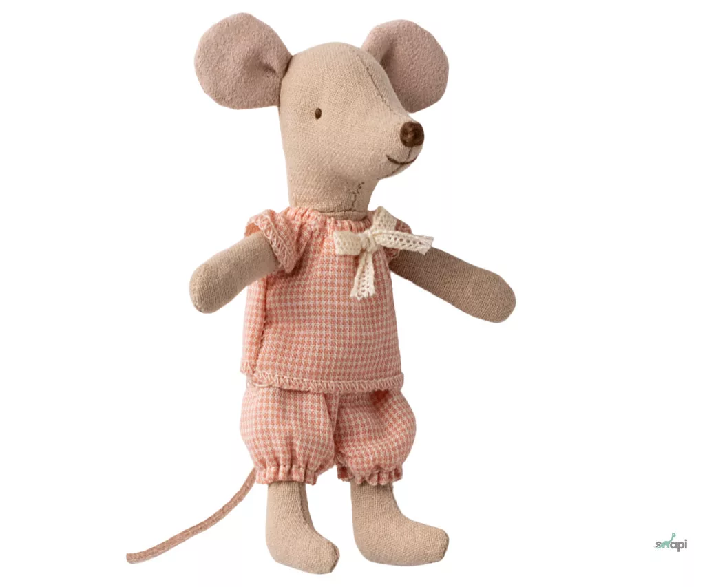 Egy klasszikus Maileg termék, ez az egér órákig tartó játékra kész, és nyugodtan alszik a kis gyufásdobozában. A ruhák és az ágynemű puha anyagokból készültek, egyedi mintákkal gyönyörű színekben. Az egér kezében mágnesek vannak.