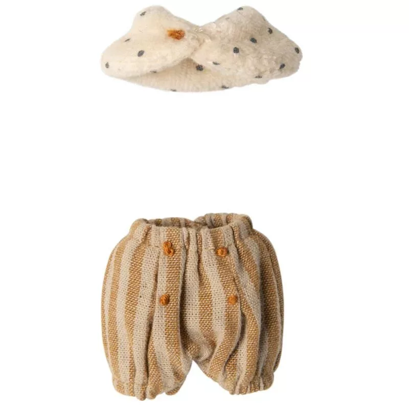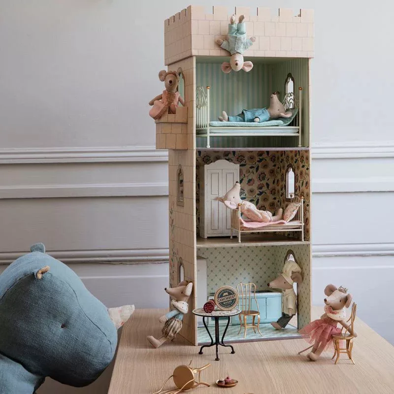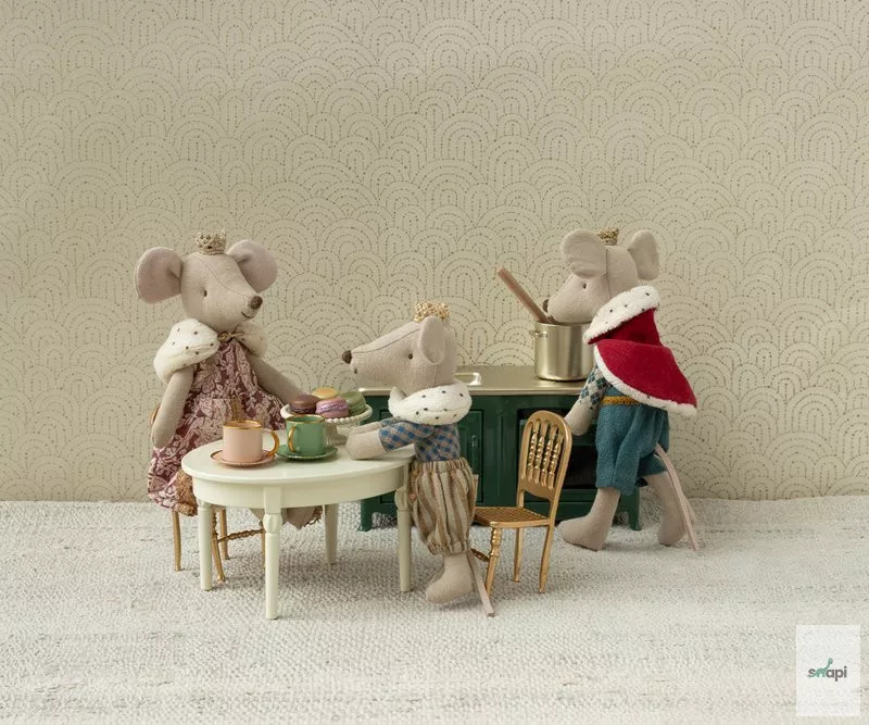 Igazi hercegegér nagytestvér méretben. A legszebb ruháiba van öltözve, gyönyörű részletekkel és arany koronával. Tökéletesen illik a Maileg-kastélyba.