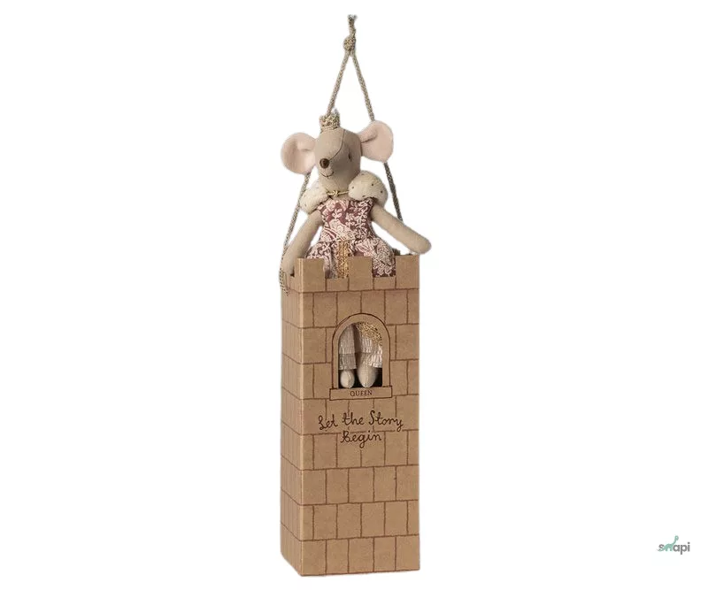 A királynő egér Anya méretben készen áll, hogy háziasszony legyen a kastélyában. Gyönyörű királyi ruhát és koronát visel, és tökéletesen illik a kastély termébe.