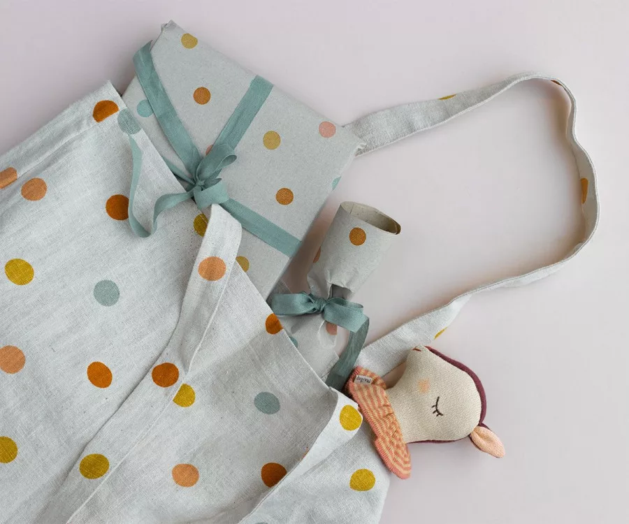 Gyönyörű pöttyös nyomott táska a legpuhább rami/pamut anyagból. Tökéletes minden cuccodhoz, amikor útközben van.