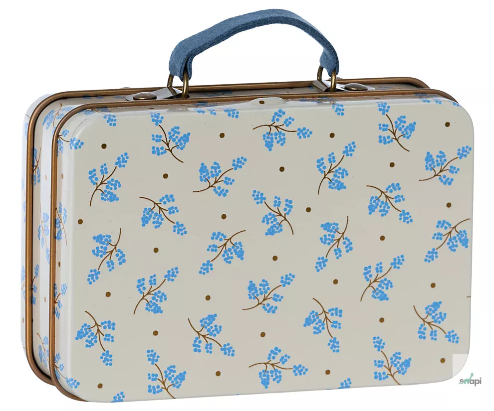 A klasszikus Maileg fémbőrönd új, gyönyörű mintával. Fantasztikus bármilyen alkalomra; apró ajándékok, ajándékkártyák, apró tárgyak vagy kis puha játékok tárolására.