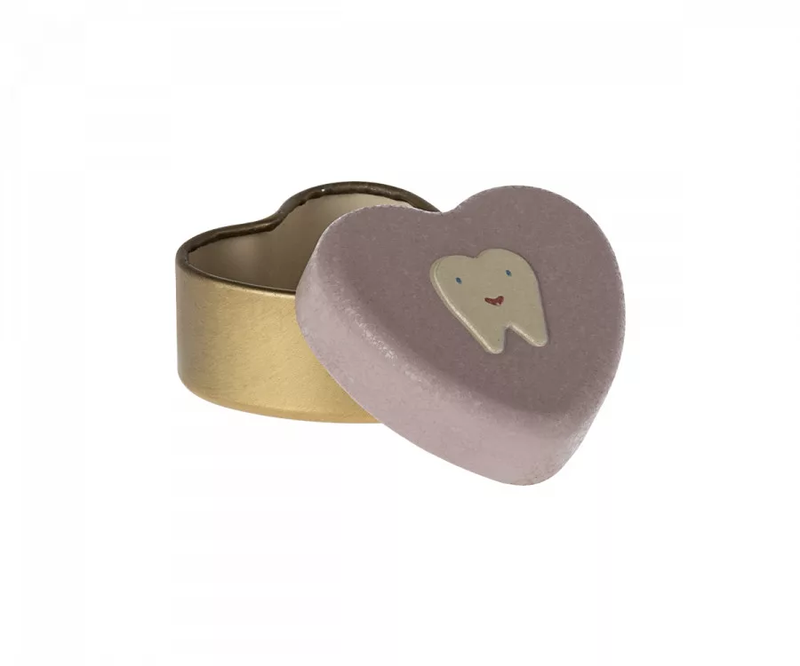 Ez a fém szív alakú dobozka tökéletes hely a kis fogak tárolására, hogy a gyermekkori emlékek megmaradjanak. A doboz szép fogazatú domborulattal és speciális repedezett felülettel rendelkezik a fedelén.