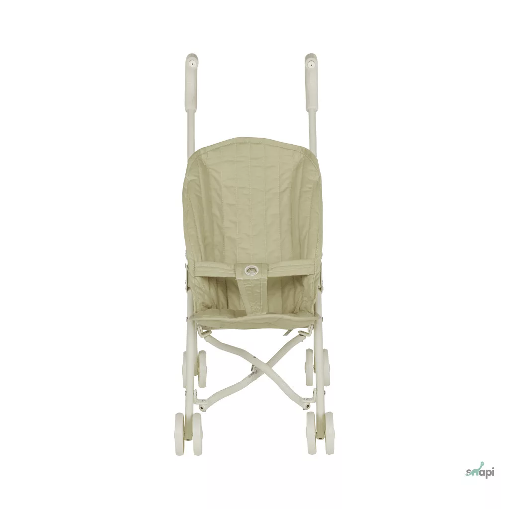 A babakocsiban van egy steppelt pamutülés, amely fém összecsukható kerethez van rögzítve, és mindez kényelmesen tárolható egy stílusos pamutvászon húzózsinóros táskában a könnyű szállítás érdekében.