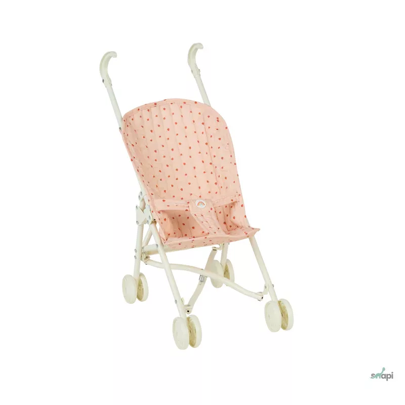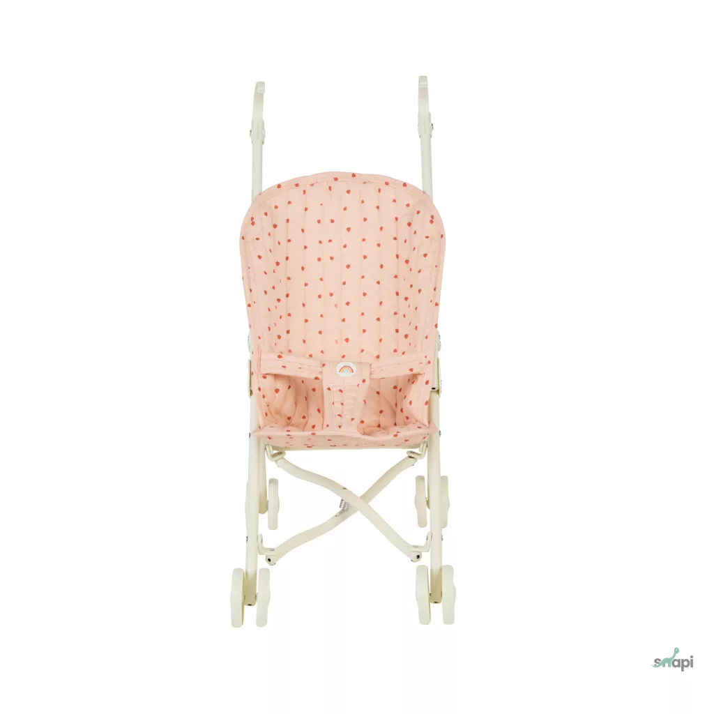 A masszív fogantyúval és sima kerekekkel tervezett babakocsi könnyen tolható és manőverezhető, így praktikus választás az aktív játékhoz. Az imádnivaló eperminta szemet gyönyörködtető, puha tapintása fokozza vonzerejét.